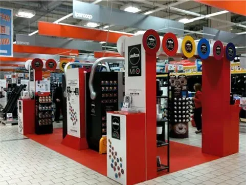 Un’isola promozionale deve essere visivamente accattivante. Colori, materiali e luci vanno selezionati con cura per richiamare l’attenzione e comunicare immediatamente il messaggio promozionale. L’obiettivo è creare un impatto visivo forte, ma coerente con il brand.